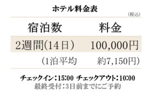 2週間宿泊10万円でご提供